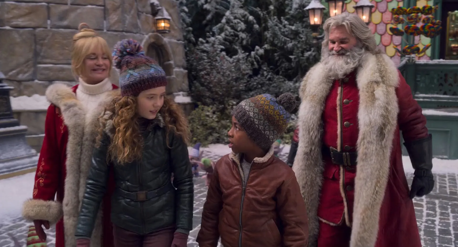 Cast: Kurt Russell as Santa Claus, Goldie Hawn as Mrs. Claus, Darby Camp as Kate Pierce, Julian Dennison as Belsnickel, Jahzir Bruno as Jack, Darlene Love as Grace, Tyrese Gibson as Bob, Sunny Suljic as Doug Pierce, Judah Lewis as Teddy Pierce, Kimberly Williams-Paisley as Claire Pierce, Patrick Gallagher as Security Guard, Malcolm McDowell as Hakan, Violet Columbus as Cashier, Tricia Munford as Harriet, Christy St. John as Susie, Danny Dworkis as Salvation Army Santa, Seth Whittaker as Irritated Passenger, Andrew Morgado as Hugg (voice), Debi Derryberry as Speck / Fleck (voice), Jessica Lowe as Mina (voice), Michael Yurchak as Bjorn (voice), Kari Wahlgren as Jojo (voice), Camille Marty as Minor #1, Brady Droulis as Minor #2, Noah Sullivan as Minor #3, Mario Renato Dela Peña Viderique as Mexican Santa Claus, Quinton Guyton as Customer, Anakaren Robles Ruis as Concierge, Prince Nii Engmann as Choirmaster, Joshua Blumhagen as Dancer, Milaina Chanel as Dancer, Amanda Cleghorn as Dancer, Serena Crouse as Dancer, Justine Gera as Dancer, Andrew Kyrzyk as Dancer, Michel Issa Rubio as Dancer, Romy Sanchez as Dancer, Tessa Tamura as Dancer, Megan Serena Trainer as Dancer, Teya Wild as Dancer